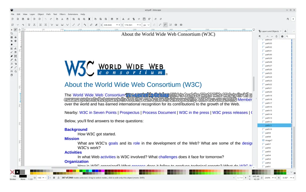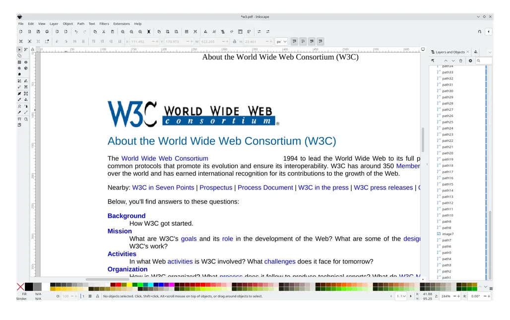right-click on your pdf document in your file explorer. click on open with and inkscape to open the pdf with inkscape.